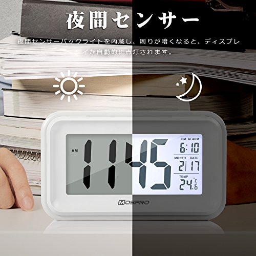 -. Title : MOSPRO デジタル 目覚まし時計 大きい文字 見やすい 多機能 置き時計 温度計 夜間バックライト