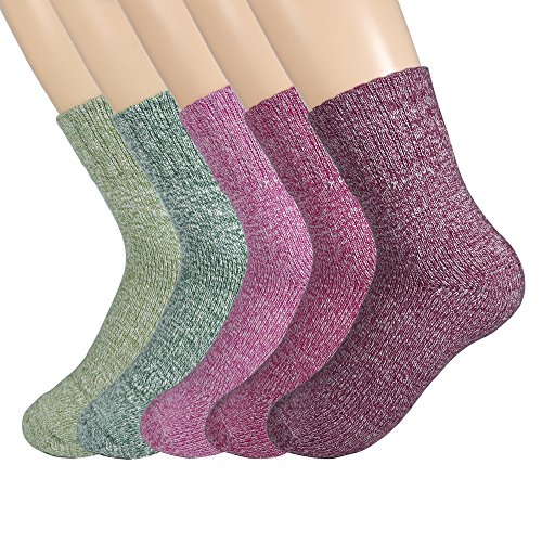 -. Title : 5 Pairs Womens Socks Winter Warm Thick Knit Casual Wool Cozy Crew Socks