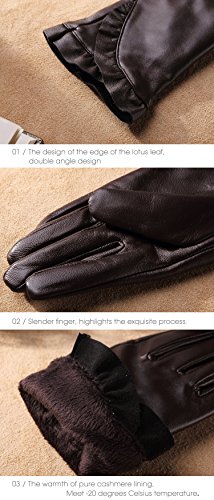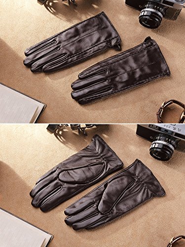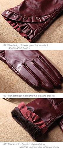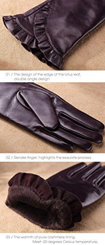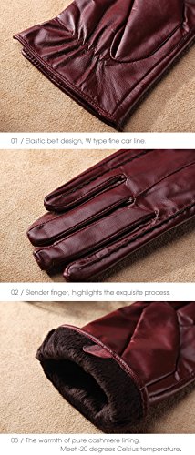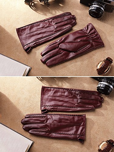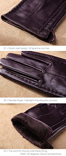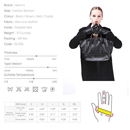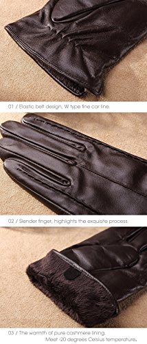 * Material: 100% ITALIAN NAPPA TOP GENUINE LEATHER * Lining: 100% PURE CASHMERE LINING * Color: BLACK/BROWN/RED/PURPLE Size Chart: Measurement for men gloves: Size S= 6.5" - Middle finger = 2.95" Size M= 6.8" - Middle finger = 2.95" Size L = 7.4" - Middle finger = 3.11" Size XL= 7.7" - Middle finger = 3.19" Size 2XL= 8.0" - Middle finger = 3.27" Because the leather gloves for men are sent when it just finished, so when you receive it, maybe it will smell bad. This is normal. But you just need to place gloves at ventilated place several days. The smell will gone. Don't do this: 1. Rub on sharp or rough objects 2. Place under the sun directly 3. Dry it with a hair dryer 0