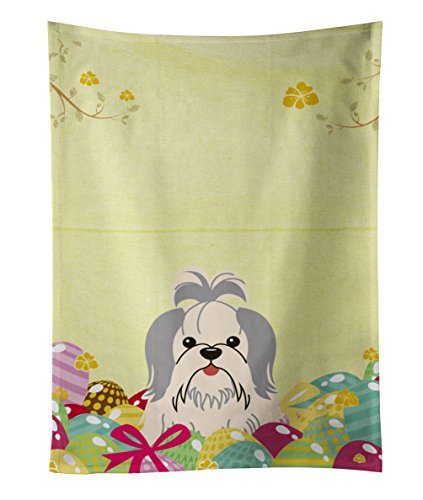 Caroline's Treasures Easter Eggs Shih Tzu Silver White Kitchen Towel, Multicolor, 25" x 15"