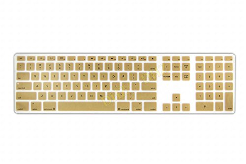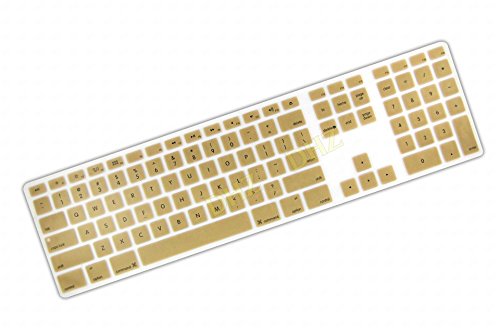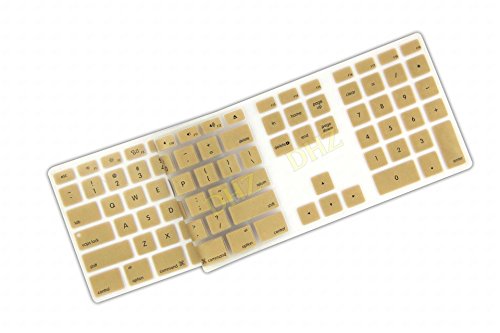 DHZ® Gold Full Size CLEAR Ultra Thin Silicone Soft keyboard Cover Skin for Apple Keyboard with Numeric Keypad Wired USB for iMac (Gold)