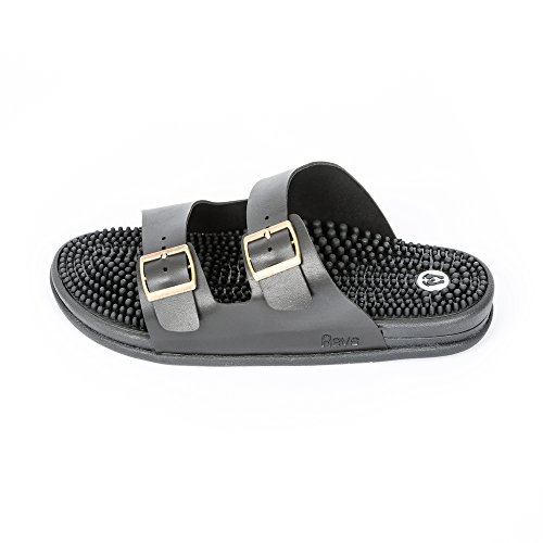 Binding : Apparel Product Description Revs is simply an abbreviation for Revitalise Your Sole. Revs is an exciting and exclusive brand, by Kenkoh Europe Ltd. Revs specialises in Reflexology Massage Footwear, with the aim of providing you with an effective, comfortable, supportive massage shoe, which is also stylish and suitable for all occasions, and all ages and stages in life. Whether you are a sport fanatic or prefer a more leisurely pace to life, or have specific ailments you are looking to target Revs shoes offer you a natural healing therapy. The keyEfeature of the flip flops is theEThe Reflexology Massage Insole:EThe natural rubber nodules on the soles of the shoe consist of varying heights widths to target each every reflex in your feet. By stimulating these reflexes it will help to improve nerve blood supply promote circulation, helping to prevent or alleviate many health problems, in a natural way. Revs provides you with a daily reflexology foot massage, giving you an easy effective way to help you remove congestion toxic waste from your body. The Revs foot massage cleanses rebalances your body making you feel, look, healthier happier.EThe materials for Revs have been chosen for their durability, comfort quality. The nodules are designed to sit within the shape contours of the feet so every organ, gland muscle they correspond to within your body are stimulated. The sole of the Revs shoes also contains elastomer to provide shockEabsorbing qualities, soft cushioning, excellent for relieving painful, tired feet legs. People who suffer from Plantar Fasciitis, Heel Pain, Pronantion problems, Diabetes Neuropathy, Swollen Feet Legs have benefited fromEwearing Revs. EThe flip flops also have a slight arch support, useful for those with flat feet fallen arches, and need a little support for summer footwear or when they cannot wear their orthotic insoles. Revs is your summer solution to orthopaedic footwear.E 0
