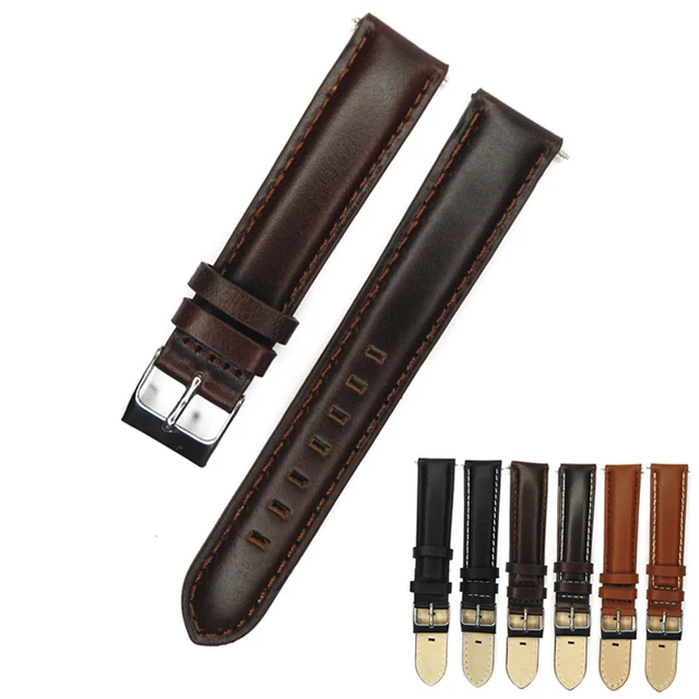 이탈리아어 정품 가죽 시계 밴드 손목 시계 16mm 18mm 진한 갈색 밝은 갈색 검은 색 시계 끈 시간 봄 바 버클