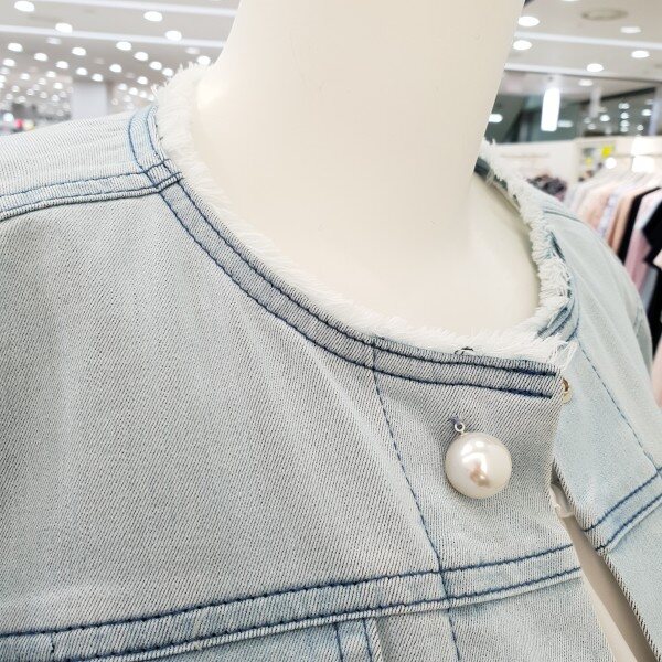 여성스러운 진주버튼장식라운드넥 데님자켓♡ 여름까지착용하기좋은 두께