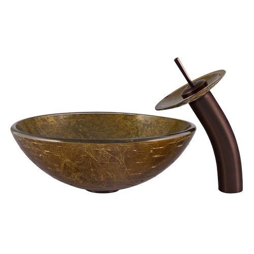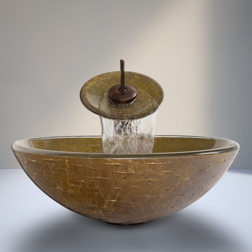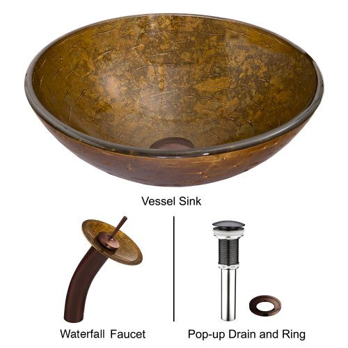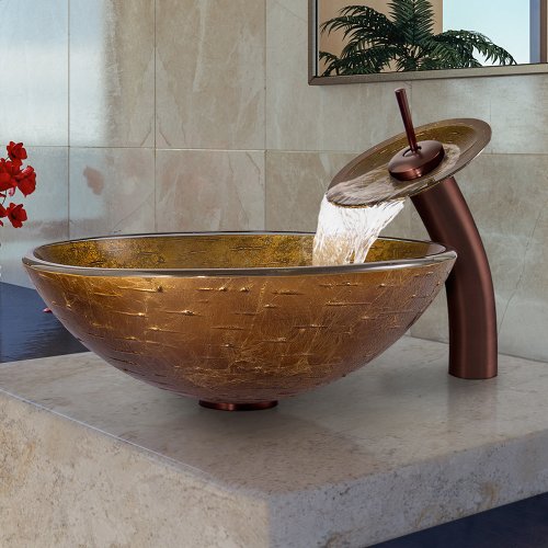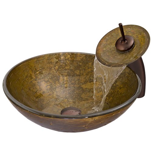 VIGO Textured Copper Glass Vessel Bathroom Sink and Waterfall Faucet with Pop Up, Oil Rubbed Bronze