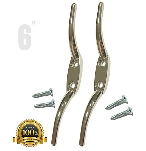 ALAZCO Premium Quality Rope Cleats - Nickel Plated Steel 6" for Ropes Blinds Curtains Sun Screens Shades awnings cord Pet Leashes Clothes Line Tarp Cover Non-Rusting (2 Sets)