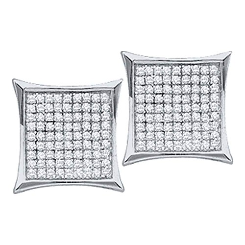 -. Title : Diamond Square Stud Earrings 10k White Gold Kite Studs Fashion Round Cluster Pave Set Fancy 1/3 Cttw