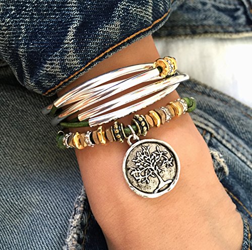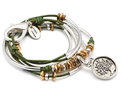 -. Binding : Jewelry -. Brand : Lizzy James -. Color : Green -. Department : womens -. Feature : Handmade items may only be exchanged. To view our exchange policy please visit our Amazon Seller page. / 2 strand leather wrap bracelet, handmade in the USA / Goldplated beads & silver tree of life pendant charm / Silver tone lobster clasp / Can also be worn as a necklace, please visit our seller page for sizing info -. Label : Lizzy James Jewelry -. Manufacturer : Lizzy James Jewelry -. Model : 0206TRIXYSILVTREECHARMGREEN -. ProductGroup : Jewelry -. ProductTypeName : FASHIONNECKLACEBRACELETANKLET -. Publisher : Lizzy James Jewelry -. Studio : Lizzy James Jewelry -. Title : Trixy Silverplated 2 Strand Natural Forest Green Leather Wrap Bracelet with Silver Tree of Life Charm