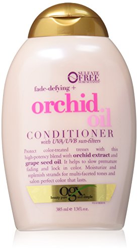 OGX Fade-Defying + Orchid Oil Conditioner will protect color-treated tresses with a high-potency blend containing orchid extract and grape seed oil