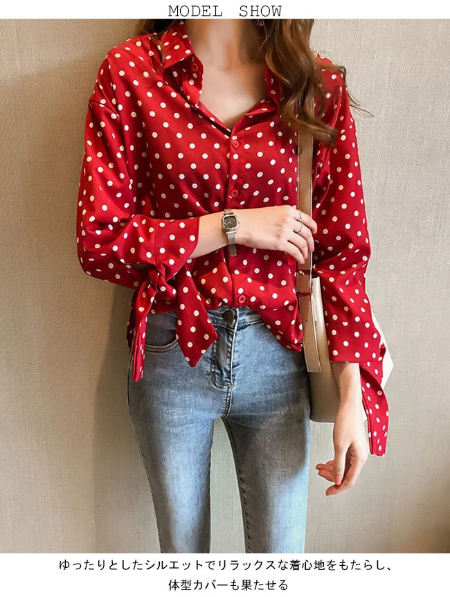 シャツ 長袖 レディース ゆったり シフォン 長袖シャツ ドット柄 ブラウス 女性用 トップス 体型カバー 水玉柄 夏物 春秋物 レトロレディース用の長袖シャツが登場ゆったりとしたシルエットでリラックスな着心地をもたらし、体型カバーも果たせる滑らかなシフォン素材を厳選、優しい風合いは女性ならではの優しい雰囲気にピッタリクラシックな配色に水玉柄の組み合わせは甘くてレトロな雰囲気を漂わせる袖口の結びデザインもとてもキュートなアクセントを付ける通勤コーデにも日常コーデにも、パンツコーデにもスカートコーデにも、ファッションを自由に楽しめる一枚カラー:ホワイト ワイン ネイビー素材 ポリエステルサイズ(cm) M L XL 2XL 3XL 4XLM バスト98 着丈62 肩幅50L バスト104 着丈63 肩幅52XL バスト110 着丈64 肩幅532XL バスト116 着丈65 肩幅553XL バスト120 着丈66 肩幅564XL バスト122 着丈67 肩幅56ご注意:※サイズは平置きサイズです。素人採寸ですので、若干の誤差がございます、ご了承ください。