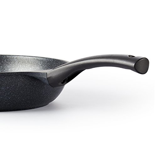 The Cook N Home 12-Inch/30cm Nonstick Marble Coating Saute Fry Pan, Black is made of heavy gauge aluminum that provides even heat conduction and prevents hot spots. Nonstick marble coating makes food release and cleaning easy. Die-cast aluminum is break resistant and does not warp. Handle stays cool while cooking. Works on gas, electric, glass, ceramic, halogen, etc. Not Induction compatible and not oven safe. Dishwasher safe, hand wash recommended for longer life span.Feature