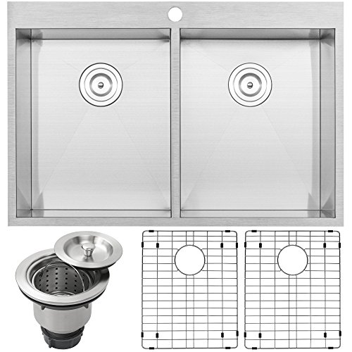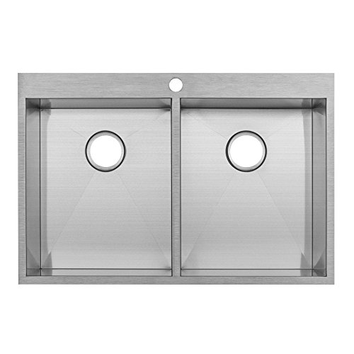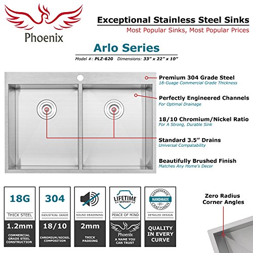 Phoenix 33" PLZ-620 Arlo Series 18-Gauge Stainless Steel Overmount Double Basin Zero Radius Kitchen Sink with Accessories