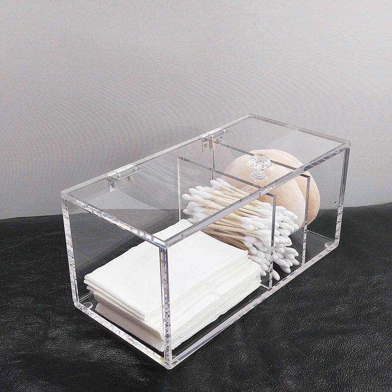 New Handcrafted Clear Acrylic Cotton Pad Holder Cotton Bud Makeup Sponge Storage Box