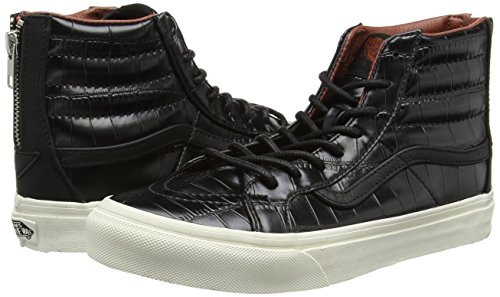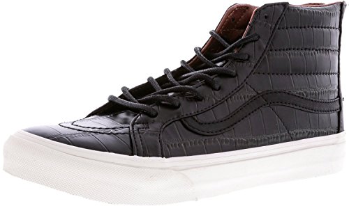 Studio : Vans Publisher : Vans Binding : Apparel Product Description The Croc Leather Sk8-Hi Slim Zip combines a slimmed down version of the legendary lace-up high top with a zipper entry at the heel, leather uppers, signature waffle rubber outsoles, and padded collar and heel counters for support and flexibility. 0