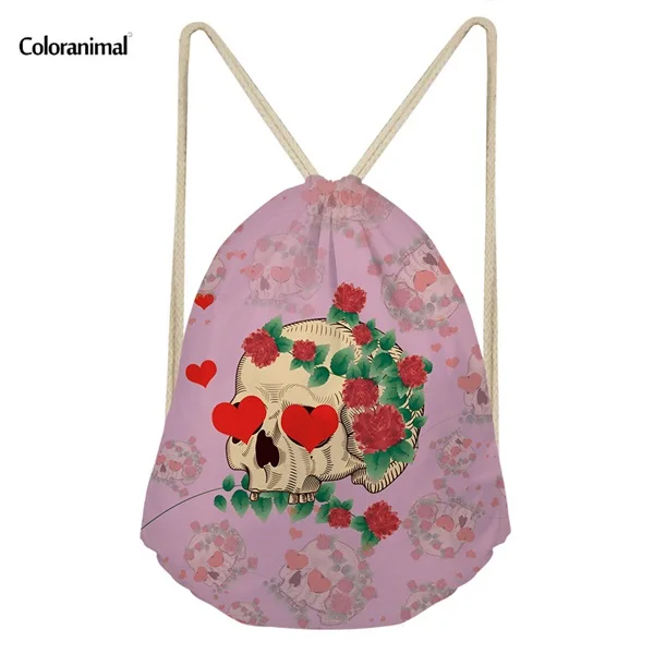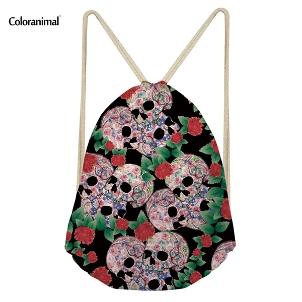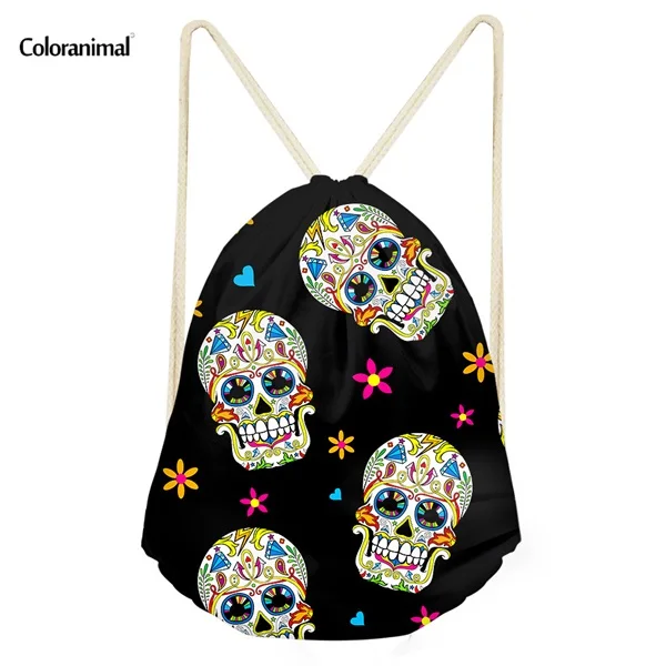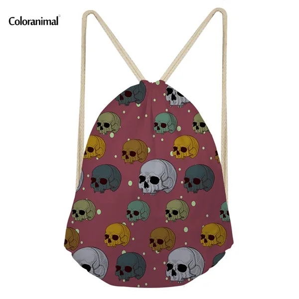 pattern:skull punk print drawstring bag