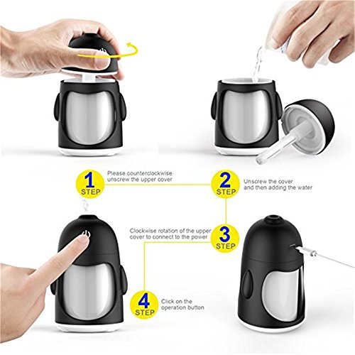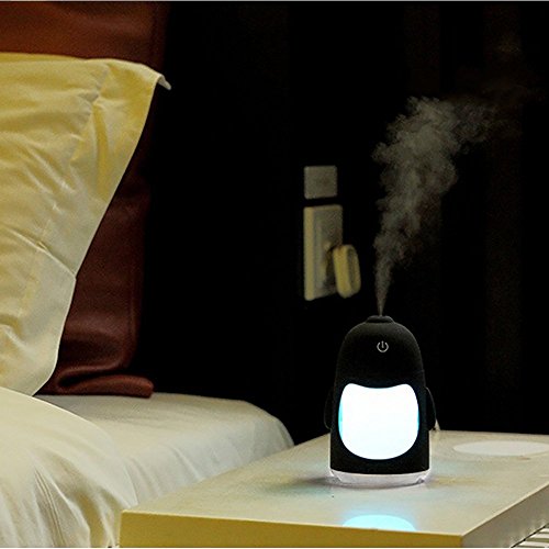 Mini Portable Travel Cool Mist Humidifier 7 Color LED Lights USB Ultrasonic Purifier with Automatic Shut-off Function for Baby Room Home Office White Base