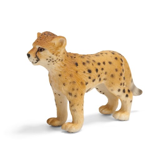 -. Binding : Toy -. Brand : Schleich -. Department : Schleich -. EAN : 5052615038935 -. Feature : Hand Painted / Highly Detailed / Fun Fact: Faster than most sports cars, the cheetah can reach speeds of almost seventy miles per hour from a dead stop in three seconds / Cheetahs are fast felines spotted with black -. IsAdultProduct : 0 -. IsAutographed : 0 -. IsMemorabilia : 0 -. Label : Schleich North America -. Manufacturer : Schleich North America -. Model : 14327 -. MPN : 14327 -. PackageQuantity : 1 -. PartNumber : 14327 -. ProductGroup : Toy -. ProductTypeName : TOYS_AND_GAMES -. Publisher : Schleich North America -. Studio : Schleich North America -. Title : Schleich Cheetah Cub -. UPC : 658183143276 -. Warranty : No Warranty