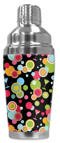 -. Title : Mugzie 939-SHA "Martini Polka Dots" Cocktail Shaker with Insulated Wetsuit Cover, 16 oz, Black