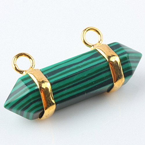 Aoneitem Green Malachite Stone Side Ways Gold Tone Charms Connector Links Finding