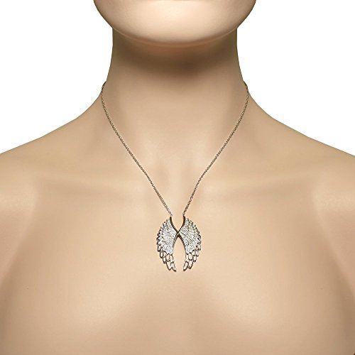 -. Title : 925 Sterling Silver White Clear CZ Large Statement Angel Wings Pendant Necklace, 18"