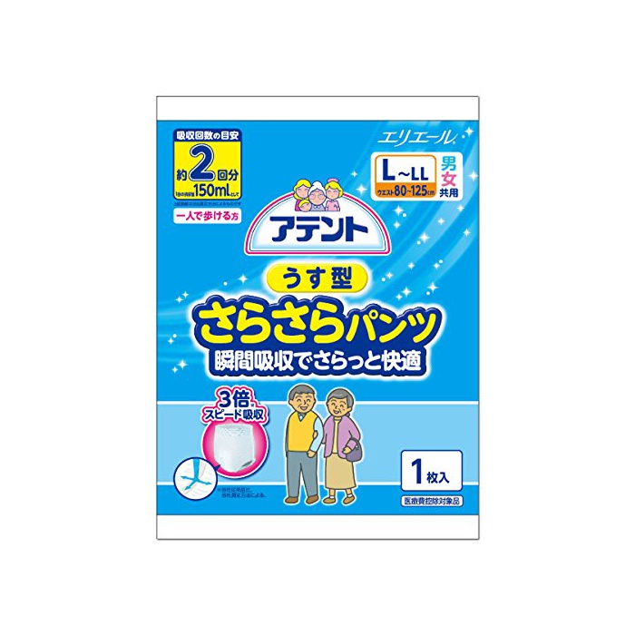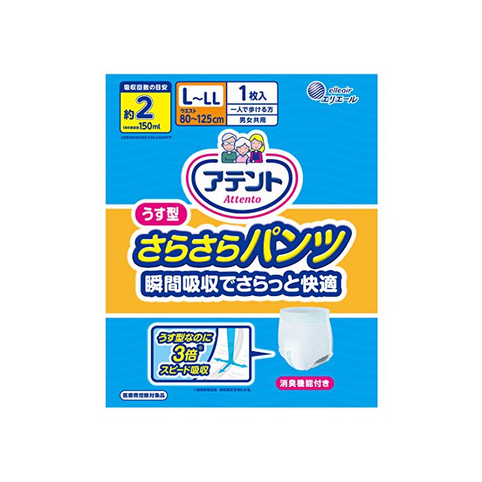 원본상품명: アテント うす型さらさらパンツ L~LL 男女共用 2回吸? 【ADL?分:一人で?ける方】