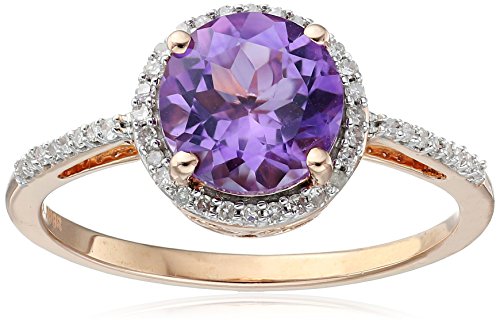 -. Title : 10k Rose Gold Round Shape Amethyst with White Diamond Halo Ring (1/10cttw, I-J Color, I2-I3 Clarity)