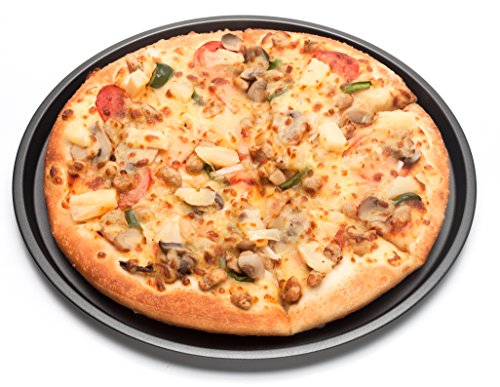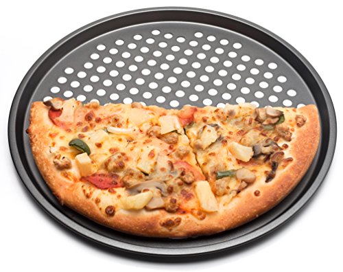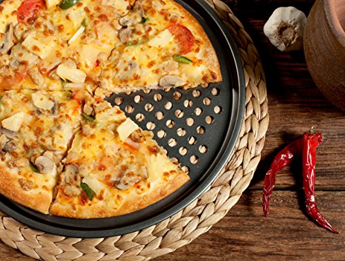 Nonstick Bakeware 13-Inch Pizza Pan for making your own pizzas. This Pizza Pans is the best pizza pan for a crispy crust. From the principal differ in food processors, comes a superior line of bakeware. It is perforated for great crust quality and turnout every time.Constructed with carbon steel, it heats up evenly.Both the exterior and interior is non-stick, so pizzas slide off easily. In the bottom of this pizza pan, you will never experience stuck on pizza pieces that're difficult to remove. Clean up of this pan is a total snap.The coating on this pizza pan is designed to last for a very long time.13-inch pizza pan each with perforated surface Heavy Gauge (1.0 mm) Steel Construction Nonstick exterior and interior thick moved edges dishwasher safe.Feature