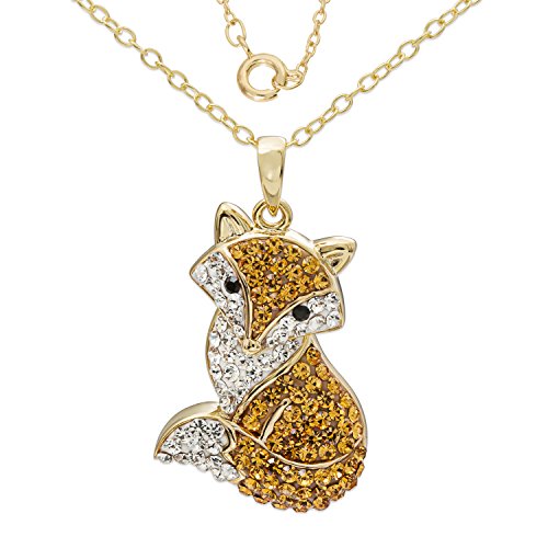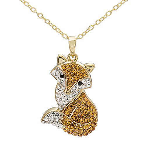 -. Title : Crystalogy Sterling Silver Swarovski Crystal Fox Animal Pendant Necklace for Women, 18"