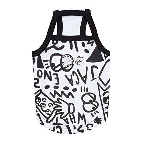 Studio : Puppia Int'l Inc. Publisher : Puppia Int'l Inc. Binding : Misc. Product Description The Rascal is a tank top features fun graffiti pattern and solid schemed. It is available in Black and Off White in sizes ranging from Small to Large. Please note that because these products were created with small/medium dog breeds in mind, larger sizes (i.e. Large, Extra-Large, etc.) do not necessarily mean larger breeds. Please refer to image of the size chart. It is very important to measure your dog with a tape measure according to the size chart. As a general rule of thumb, if your dog falls in between sizes, it is usually better to go up a size. Any weight figures are for estimates only. Always use actual measurements. Please note that when measuring your dog for clothing, it's very important to have an accurate measurement of your dog's neck and chest girth. IMPORTANT: Please note that when measuring your dog, the measurement for the neck must be taken at the BASE OF THE NECK and chest girth must be taken behind the front legs. Also it is important to take into account the size of the dog's head as well as neck girth and chest girth. Since some dogs have a much larger head than their neck, please be sure that the neck opening is large enough to slide over your dog's head. 0
