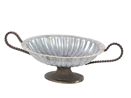 Deco 79 49235 Galvanized Oval Accent Bowl with Stlooped Handles, Gray/Gold