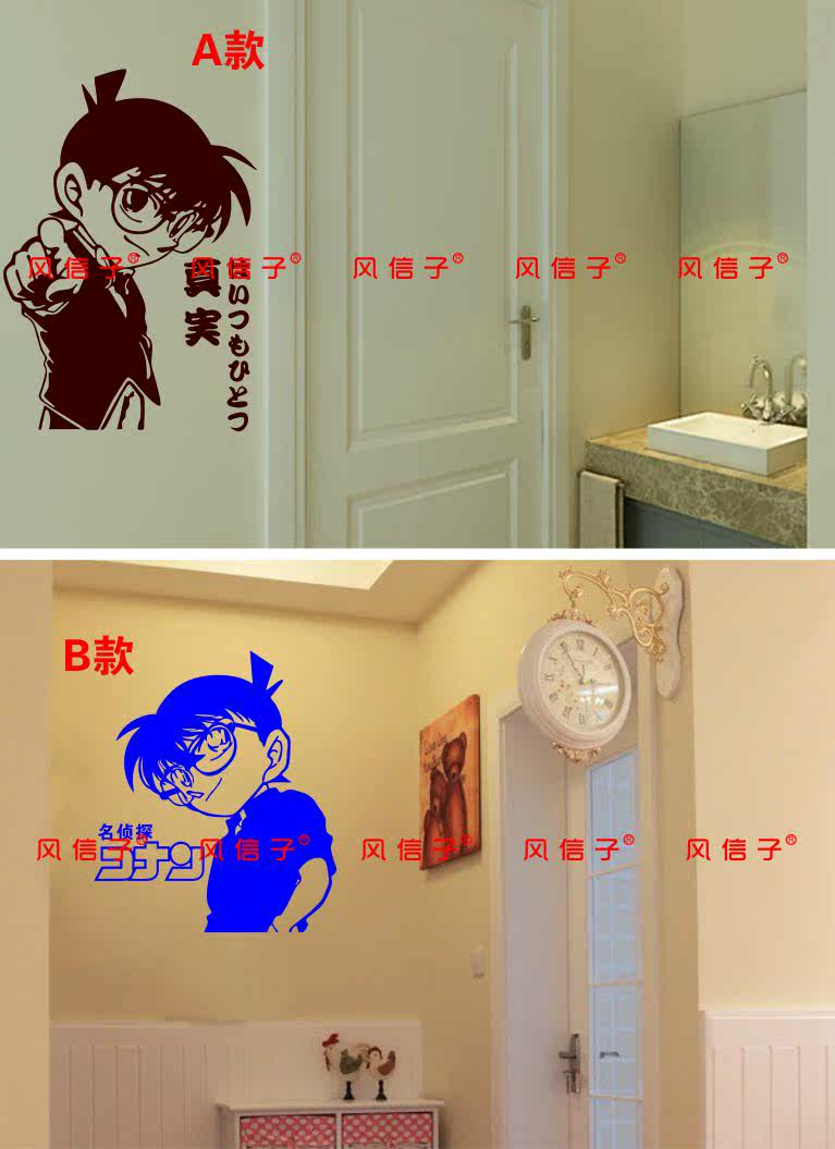 名侦探柯南动漫影视卡通墙贴个性创意PVC贴纸可移除防水镂空贴画