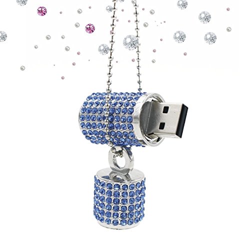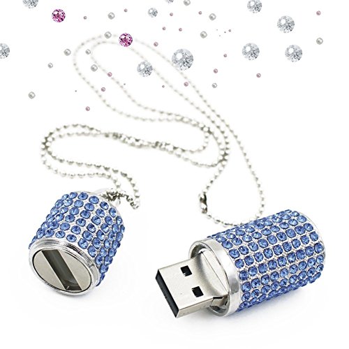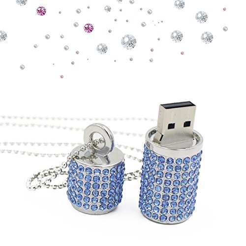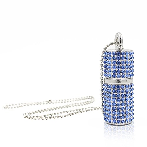 WooTeck USB Flash Drive,Bling Rhinestone Diamond Crystal Glitter Lipstick Case Shining Jewelry Necklace,64GB,Sea Blue
