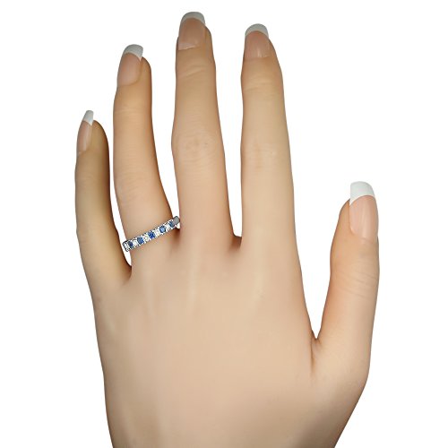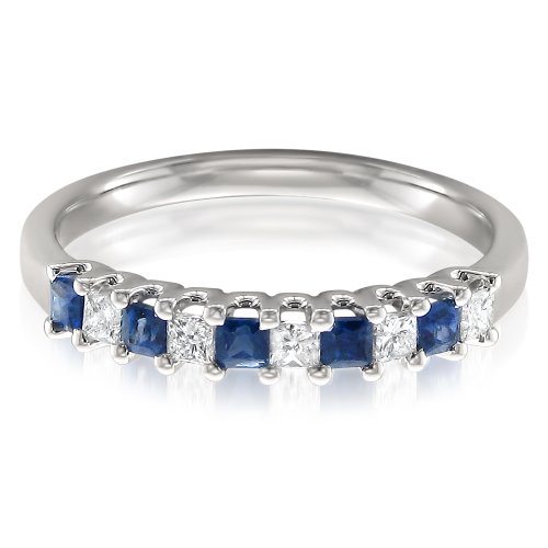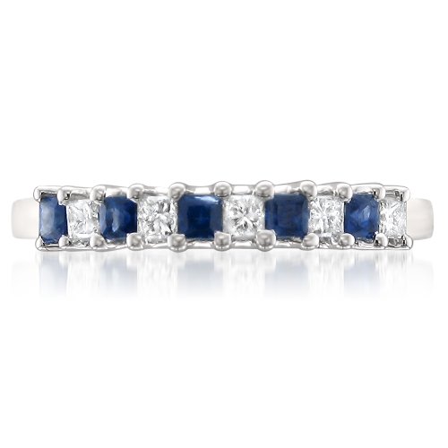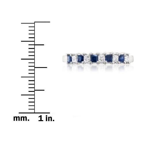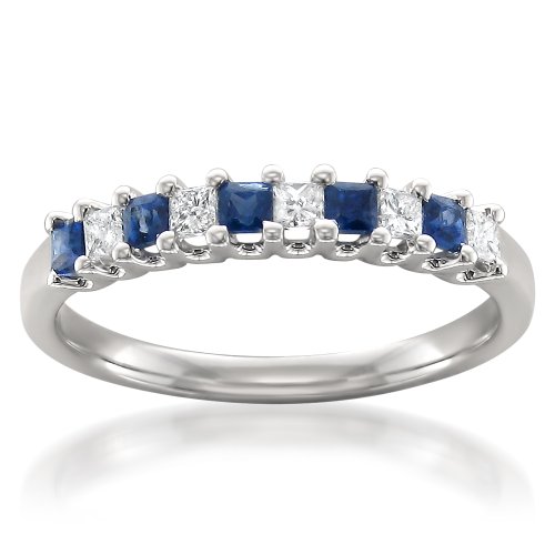 -. Title : 14k White Gold P.R.Incess-cut Diamond & Blue Sapphire Bridal Wedding Band Ring (1/2 cttw, H-I, I1-I2)