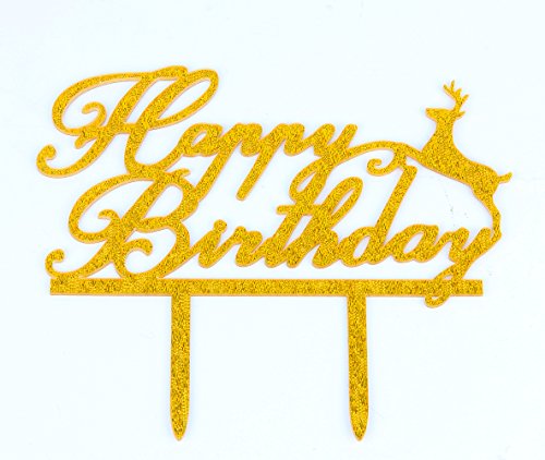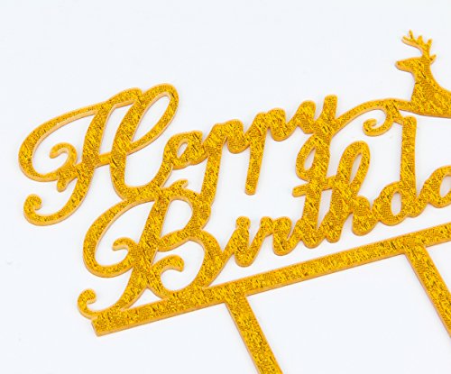 Happy Birthday Cake Topper- Gold Deer Cake Topper