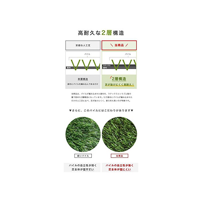 원본상품명: タンスのゲン リアル人工芝 【高耐久2層構造】 ロル マット 芝丈 35mm U字ピン20本付 幅1m×10m 夏色グリン 41100001 00