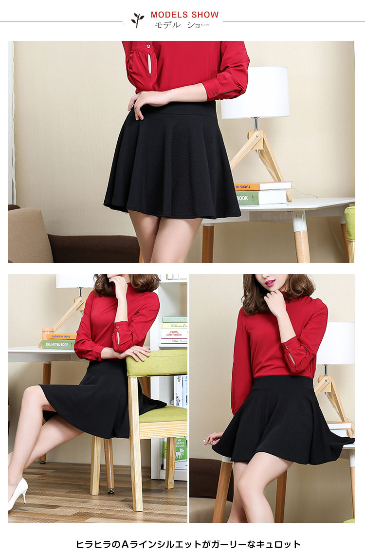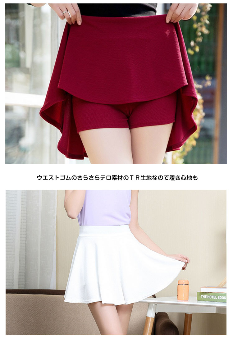| ヒラヒラのAラインシルエットがガーリーなキュロットスカートパンツなので動きやすいのが魅力的スポーティーライクにも着こなせるシルエットが旬のコーデにぴったりウエストゴムのさらさらテロ素材のTR生地なので履き心地も | |