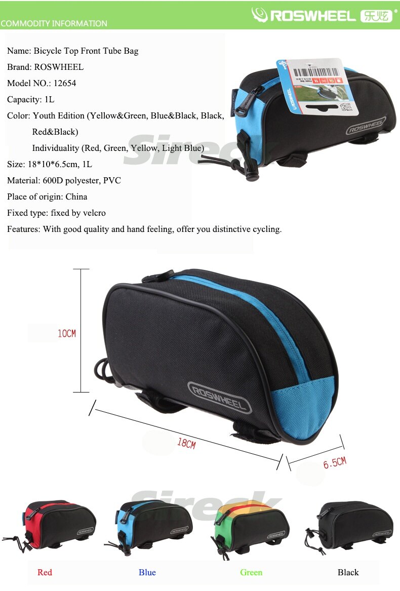 Product details of Roswheel 1L 600D Mountain Road Bike Bag Cycling Top Front FrameTube Bag・ Black