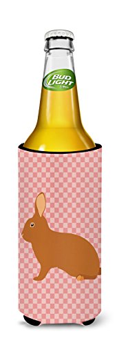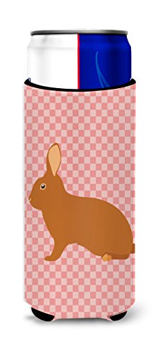 Caroline's Treasures BB7969MUK Rex Rabbit Pink Check Decorative Hugger, Slim Can, Multicolor
