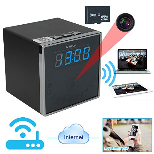 -. Title : Wiseup™ 8GB 1920x1080P HD Wifi Network Hidden Camera Clock Motion Activated Video Recorder 140°Wide View Angle for Android iPhone APP Remote View