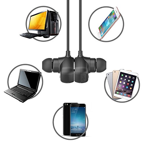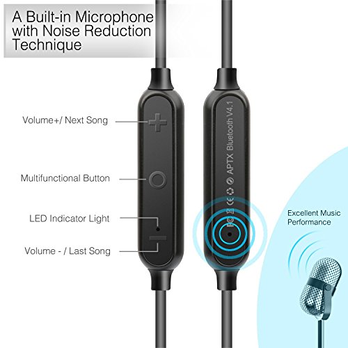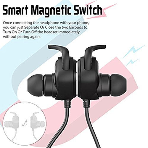·【MAGNETIC DESIGN】With unique magnetic adsorption design which you can wear like a necklace, prevent cable tangles and fall down from neck. It can connect and disconnect the bluetooth devices by attract and separate the earbuds automatically.