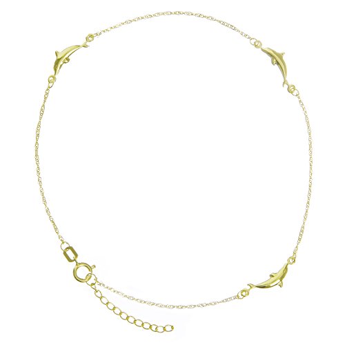 -. Title : Anklet 14k Yellow Gold Twist Chain with Polished Dolphins Adjustable Length