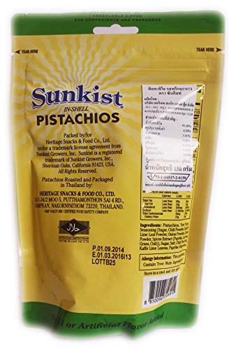 -. Feature : Sunkist In-shell Pistachios Lime & Chili / Natural & Unbleached / No Oil or Artificial Flavor Added 5.3 Oz