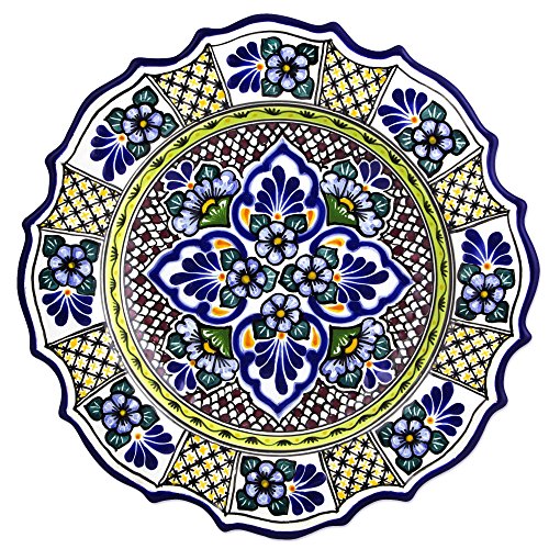 NOVICA Multicolor Floral Ceramic Plates 'Cobalt Bouquet'
