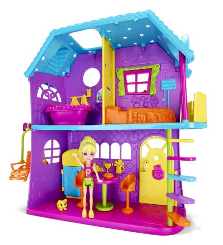 This playful playhouse features two floors and three rooms for lots of play space. Bright colors, fun details (like cutout stars in the wall) and signature Polly icons decorate this adorable house. With a Polly doll included, it’s complete play right out of the box.