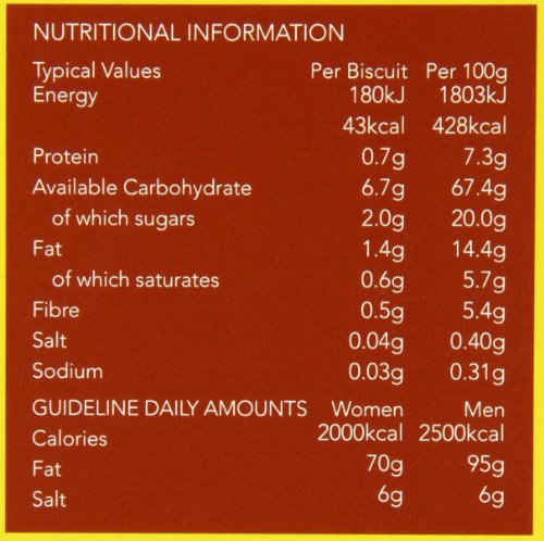 -. Feature : All Natural, clean & simply recipe, no artificials. Really tasty & healthy! / Wheat Free & 100% wholegrain oats; Zero Trans Fats (no hydrogenated fat) / Much tastier than ordinary cookies. The Stem Ginger Oat Biscuits have won a British Great Taste GOLD Awards and were a finalist in the NASFT outstanding cookie category! / Wholesome source of sustained energy, keeping you fuller for longer / Each unit box contains 4 individual cellophane wrapped packets. Keeps cookies fresher for longer and perfect for packed lunches or travelling!
