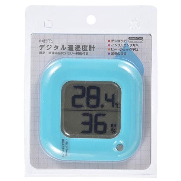 熱中症予防やインフルエンザ対策など、年中使えるデジタル温湿度計☆最高・最低温湿度を表示するメモリー機能付きです。 製造国:中国 ※サプライヤー直送品 ご注文後2~3営業日後の出荷となります【商品名】オーム電機 OHM デジタル温湿度計 青 TEM-100-A