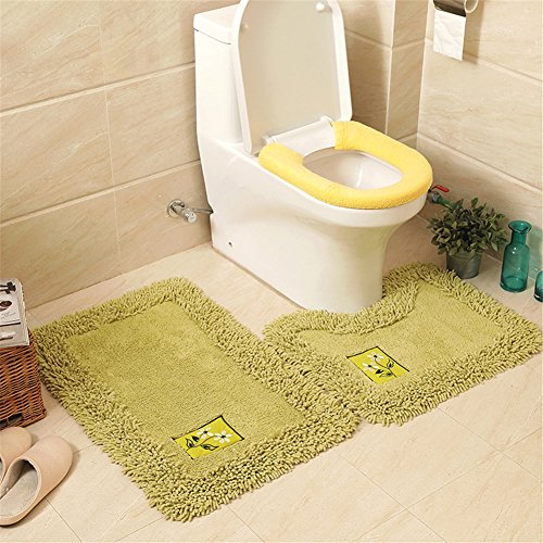 JSJ_CHENG Cotton Chenile Microfiber Bath Rug Set 2 Piece, 17.7inch by 27.5inch + 19.6inch by 19.6inch (Green)