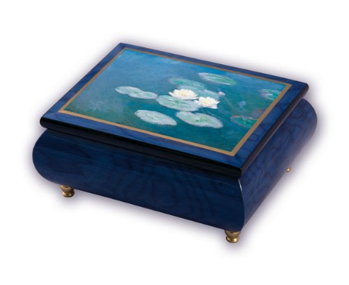 Ercolano "Nimpheas Effet Du Soir" 18 Note tune Wooden Box with Image, 6 by 4.5 by 2.75-Inch, Blue Glossy Finish