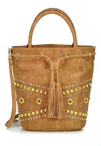 STEVEN Benny Cross-Body Bucket Bag, Tan, One Size