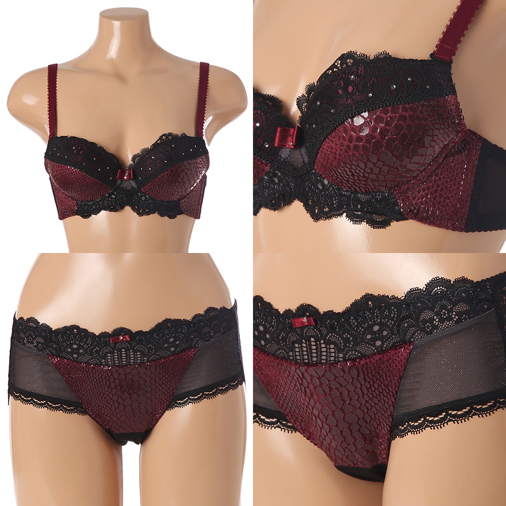 버건디뱀피 수입몰드브라 레이스팬티 세트